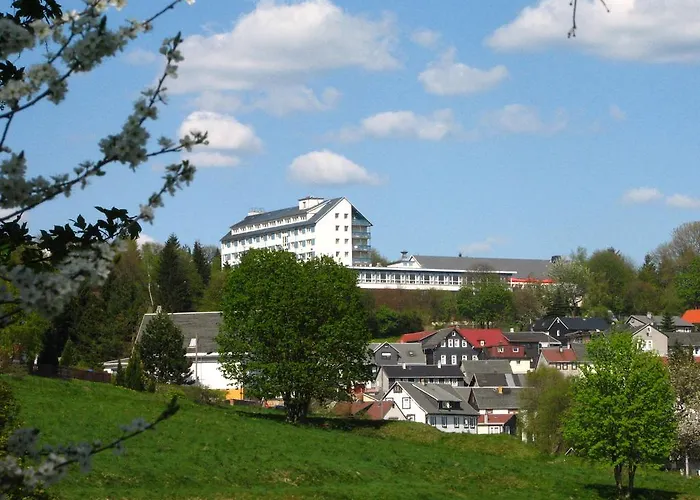 Werrapark Resort Hotel Frankenblick Masserberg ligger 2 km från Gewürzmuseum Schönbrunn i Masserberg. Det erbjuder en spasalong med ångbad och bastu. På detta 4-stjärniga hotell kan gästerna använda soldäck, hälsoklubb och solterrass eller bada i en inomhuspool.